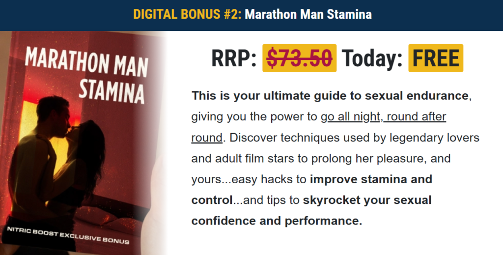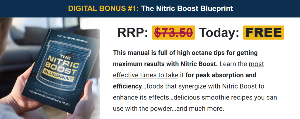 As a bonus,As a bonus, when you order a 90 or 180 day dose of Nitric Boost Ultra, you’ll have access to valuable digital bonuses to start your path to a more potent life.